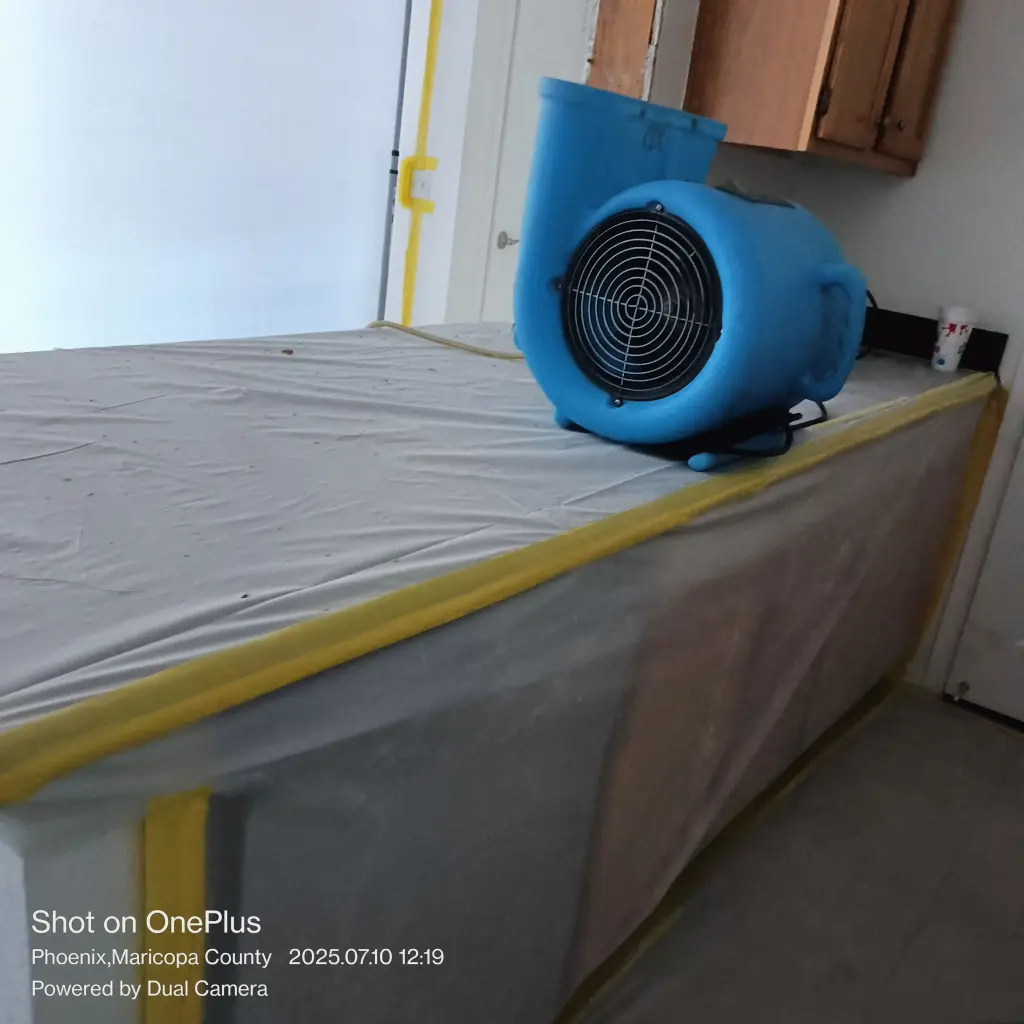 When Xtreme Drying received the call, it was from a homeowner whose ceiling had suffered damage caused by a malfunctioning dishwasher upstairs. Water had seeped down and compromised the drywall in their kitchen/living area. Our job? Contain the area, limit dust and contamination, and restore structural integrity quickly and cleanly.