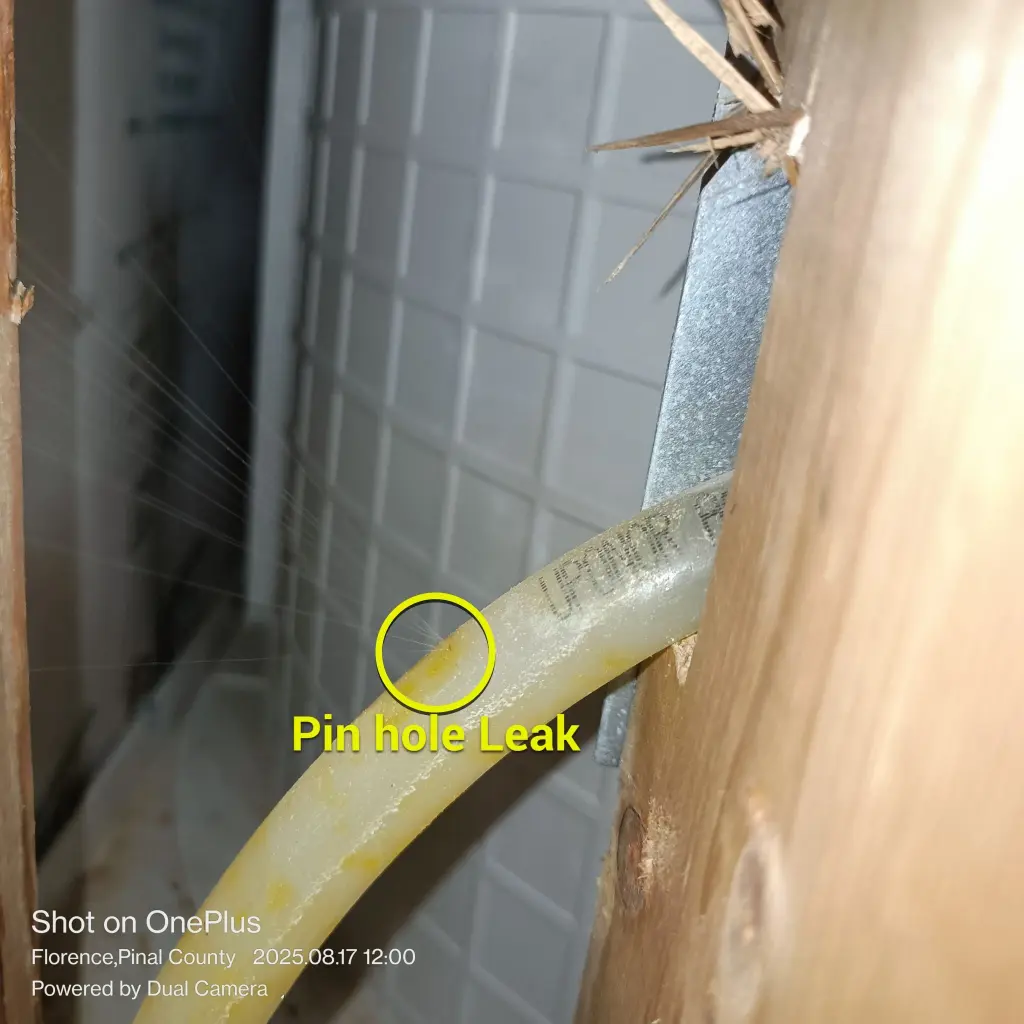 Once the mold was under control, attention turned to finding the source of water intrusion. Through investigative cutting in the shared wall and upstairs plumbing chase, we located a tiny pinhole in a PEX line feeding the upstairs shower. It was surprising how such a small breach caused extensive damage. We called in a licensed plumber to repair the leak properly and pressure-tested the line to confirm no further leakage.