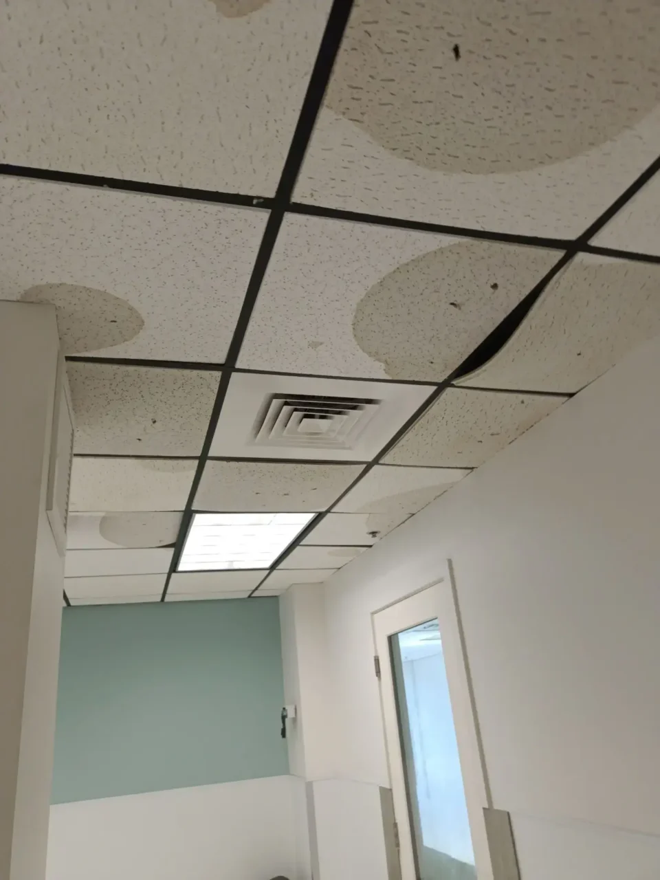 A contractor friend called Xtreme Drying for an emergency dry out in a second‑floor yoga studio in Scottsdale. Renovation work was set to start, but the team discovered water spraying from an old reverse osmosis system. The leak caused damage not only in the studio, but also dripped down into a doggy daycare situated below. They needed fast drying and mitigation to prevent further damage and keep the renovation on schedule. Because the footprint of the yoga studio was unchanged, the contractor planned to reinstall the flooring after the walls and subfloor dried. To aid this process, Xtreme Drying removed ceiling tiles and insulation from below the studio to facilitate drying from underneath. Fortunately, the daycare suffered only minimal damage thanks to the rapid response.