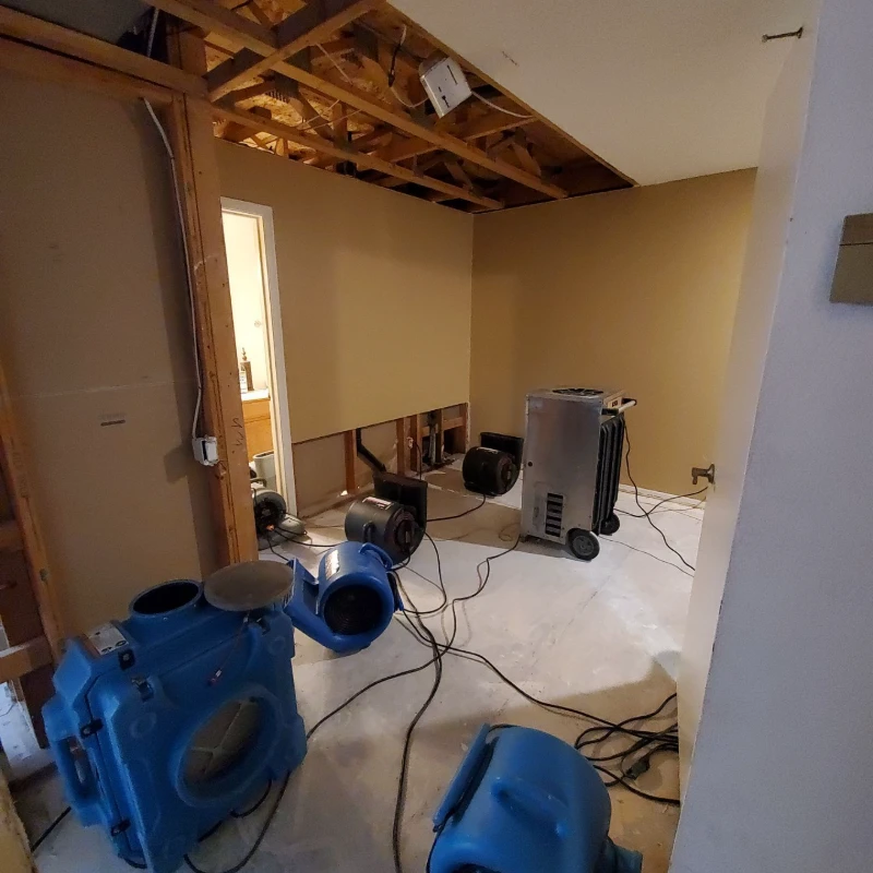 Our technicians got to work that same day, beginning with the removal of water-damaged materials, including large sections of saturated sheetrock. We strategically placed drying equipment across all affected floors to promote rapid evaporation and prevent secondary damage. The project required coordinated efforts over the weekend due to the scale of the damage and the unique structure of the home.